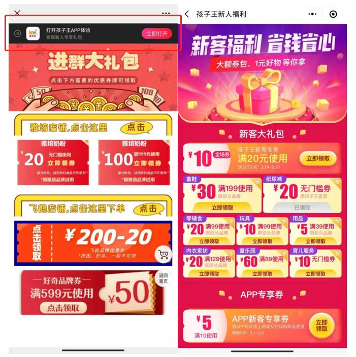 邀请好友助力领取优惠券,现在也成了许多企业做增长的标配,孩子王在这里,主要运用了两种方式。