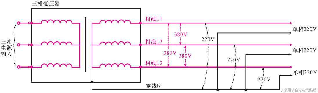 图2-7三相交流380V变为单相交流220V