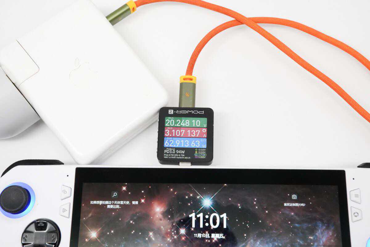 通过苹果140W充电器对ROG掌机进行充电,实测掌机Type-C端输入功率为20.25。