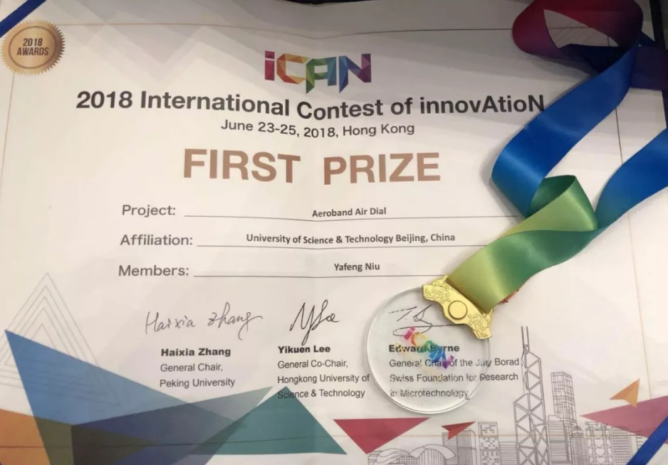 2018年4月,"空气拨片"上线京东众筹,成功募集12万,超额达成目标。当年,一举夺得"创青春"大学生创业大赛全国金奖;6月23日—25日,2018年iCAN国际创新创业大赛国际总决赛在香港科技大学举办,Aeroband空气拨片项目在决赛中斩获佳绩,成为中国五支代表队中唯一获得一等奖的队伍。2019年1月,牛亚锋顺利从北京科技大学毕业,公司也从贝壳创空间搬迁到了更大的园区——北京高校大学生创业园,在更大的空间、更高的平台继续前行!