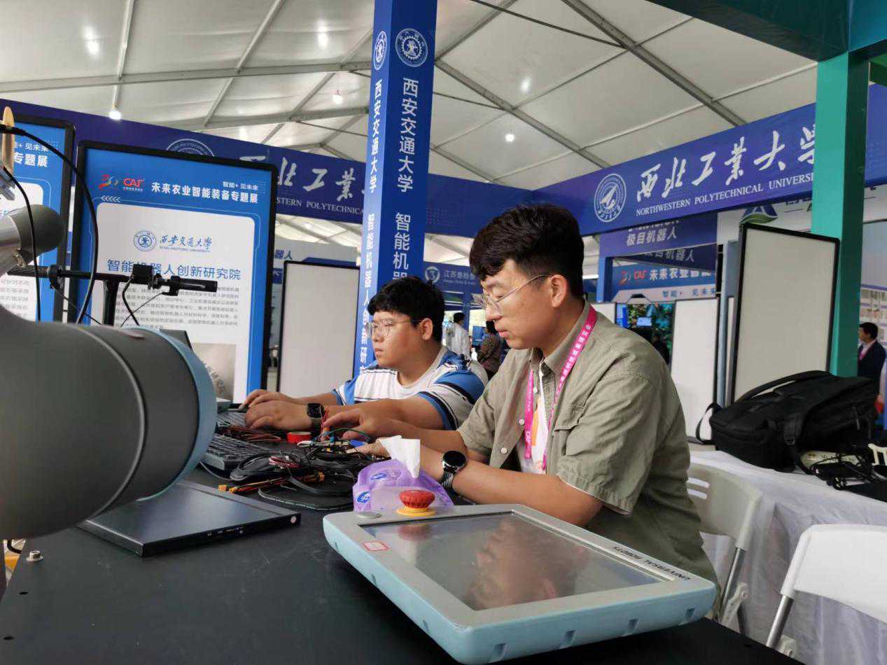 在第三十届杨凌农高会上未来农业智能装备专题展区,各式各样的智慧装备齐齐亮相:智能石榴采摘机器人、移动机器人、智能剪刀式、抓取旋转式单、双臂机器人等智能装备,吸引了众多前来参会群众的眼球。