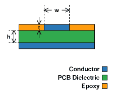 微带线:是走在表面层(microstrip),附在PCB表面的带状走线,如下图所示:
