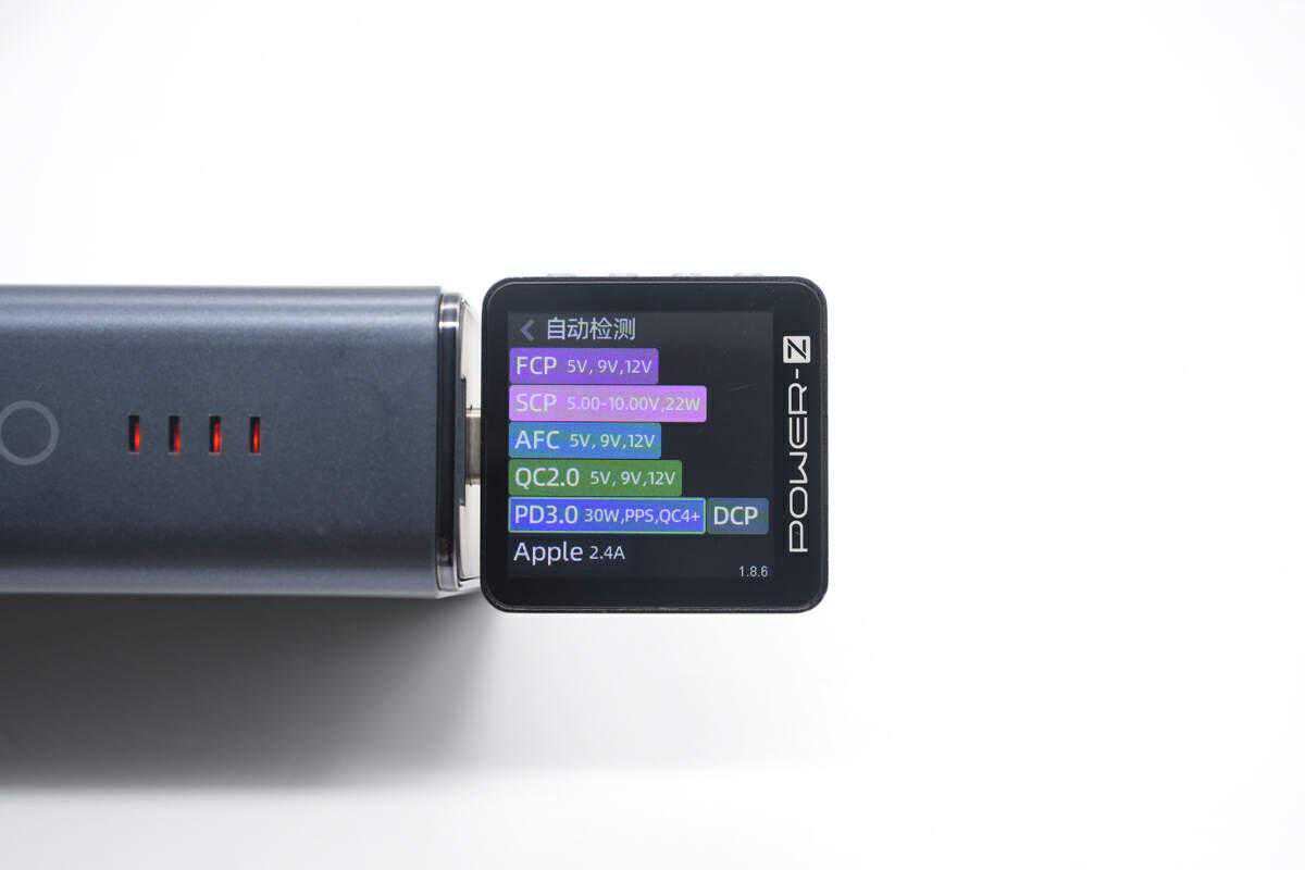 移动电源模式下,测得Type-C口支持FCP、SCP、AFC、/4+、、PPS、DCP、充电协议。