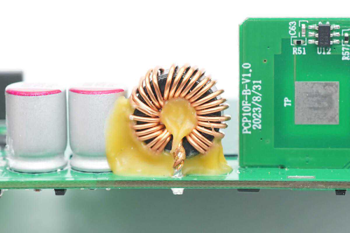 同步升降压电感采用磁环绕制,并打胶固定。