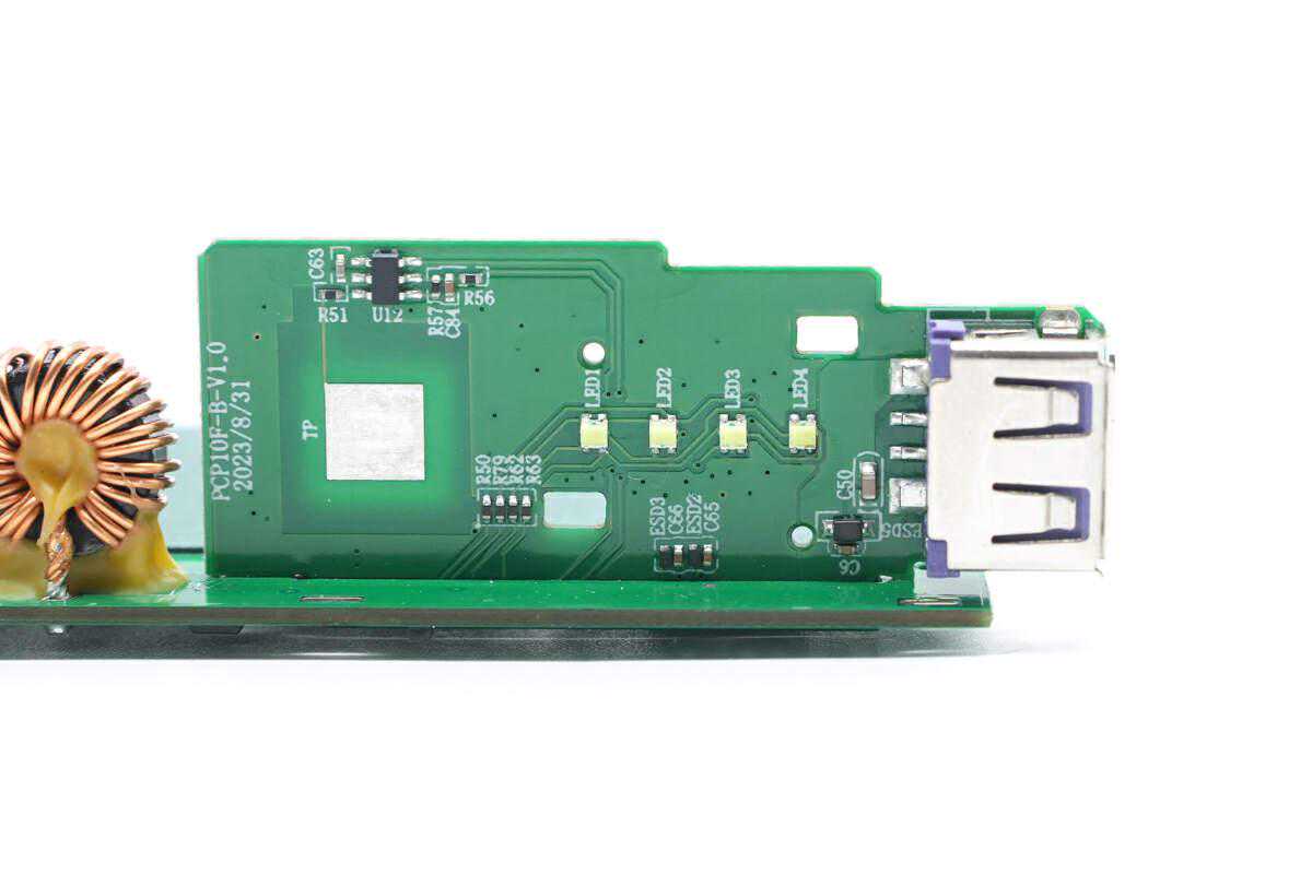 输出小板外侧焊接触摸检测芯片,贴片LED指示灯和USB-A母座。