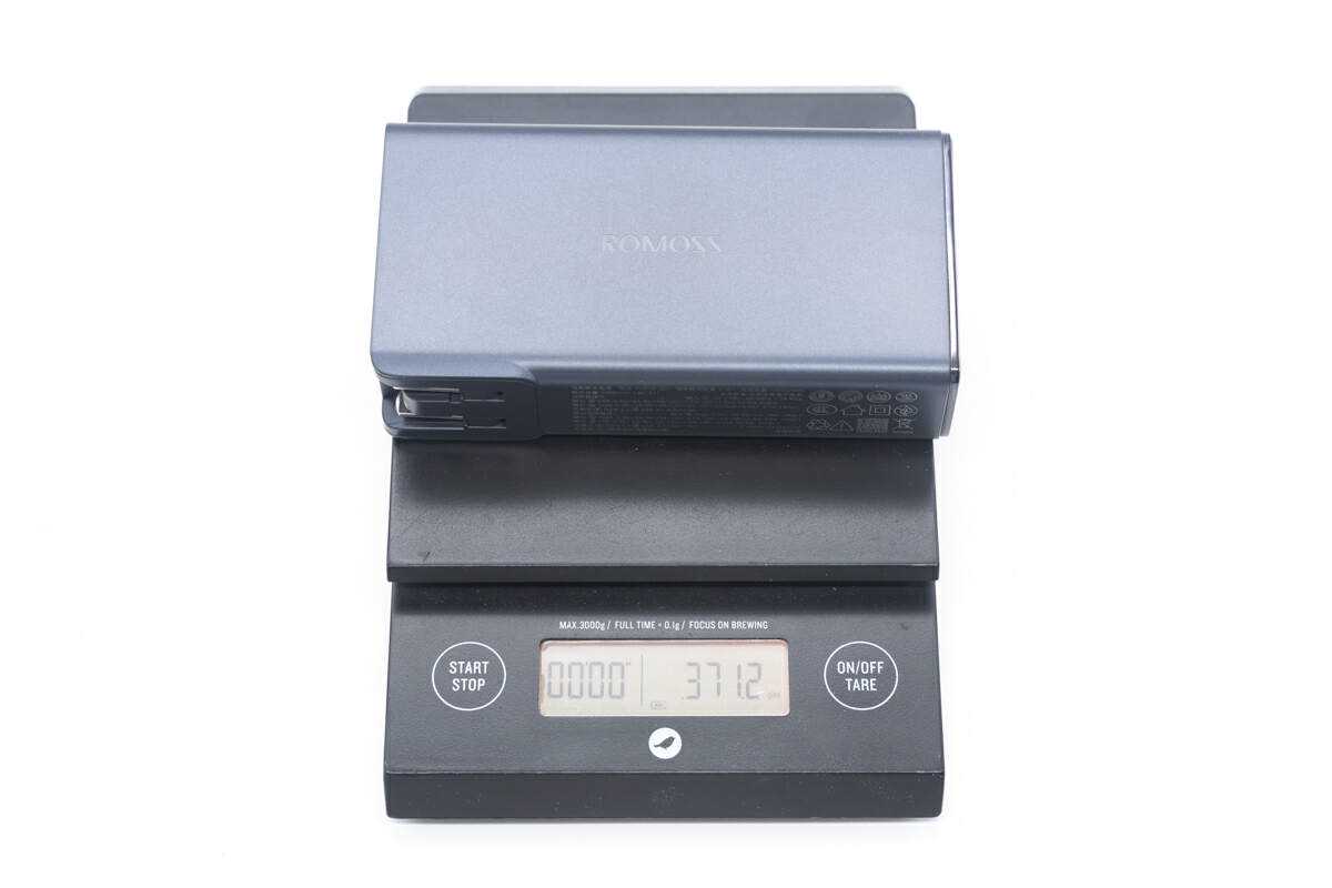 另外测得移动电源重量约为372g。