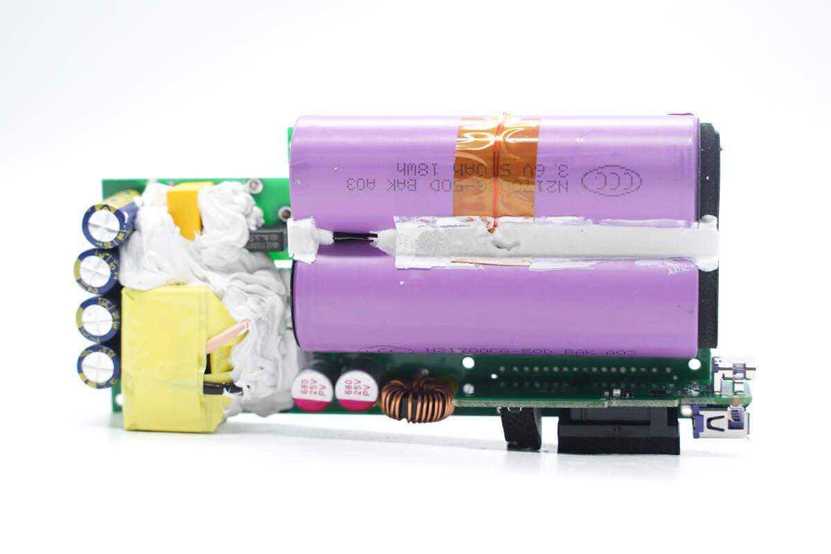 焊接取下两节2100电池,在PCBA模块上设有热敏电阻检测电池温度,电池与PCB之间粘贴青稞纸绝缘。