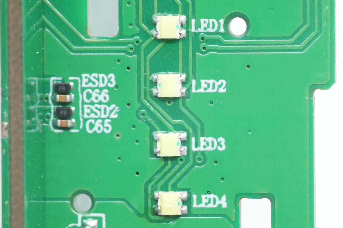 四颗LED电量指示灯特写。
