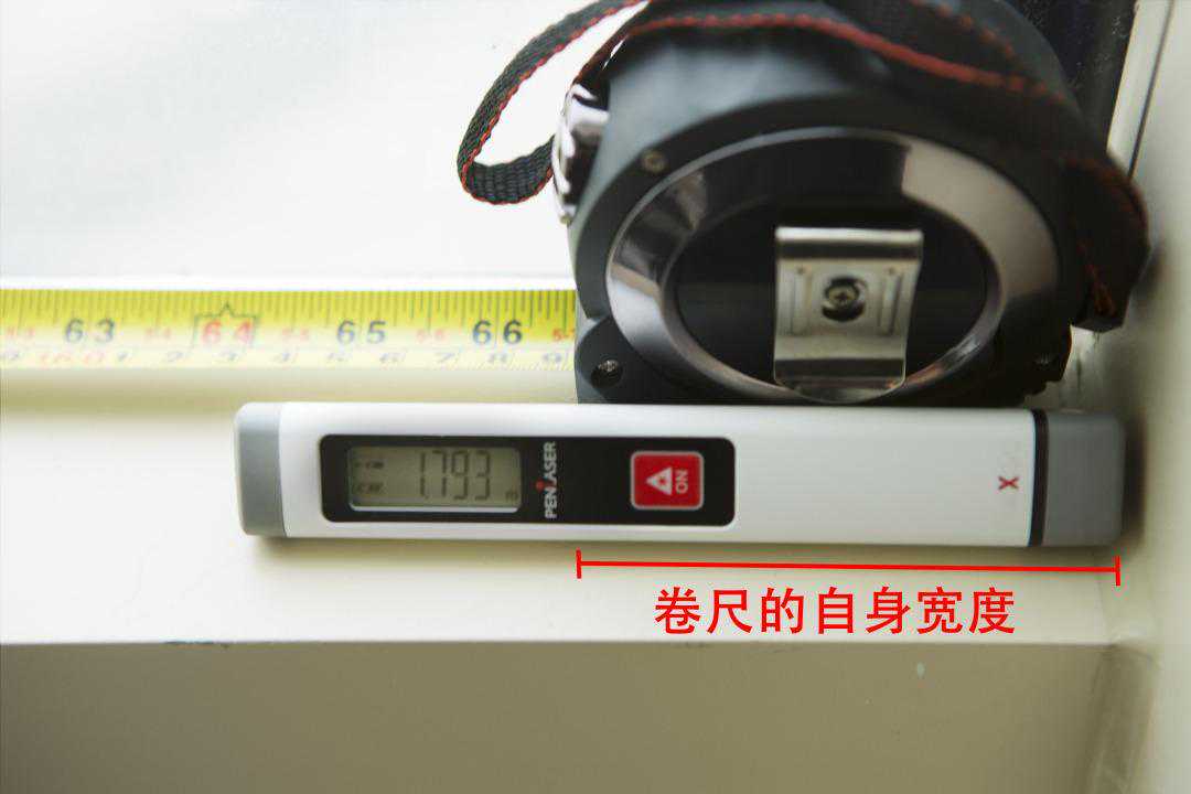 卷尺因为自身长度的原因无法测量窗框全长,激光测距仪就可以。