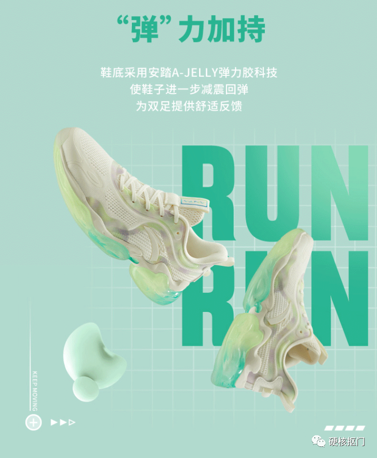 氮速科技:这个是安踏的全新超临界氮气回弹材质科技,回弹很强,也很软,是目前安踏最强的材质科技,这个材质做鞋底的鞋基本上在500-1000的价位。