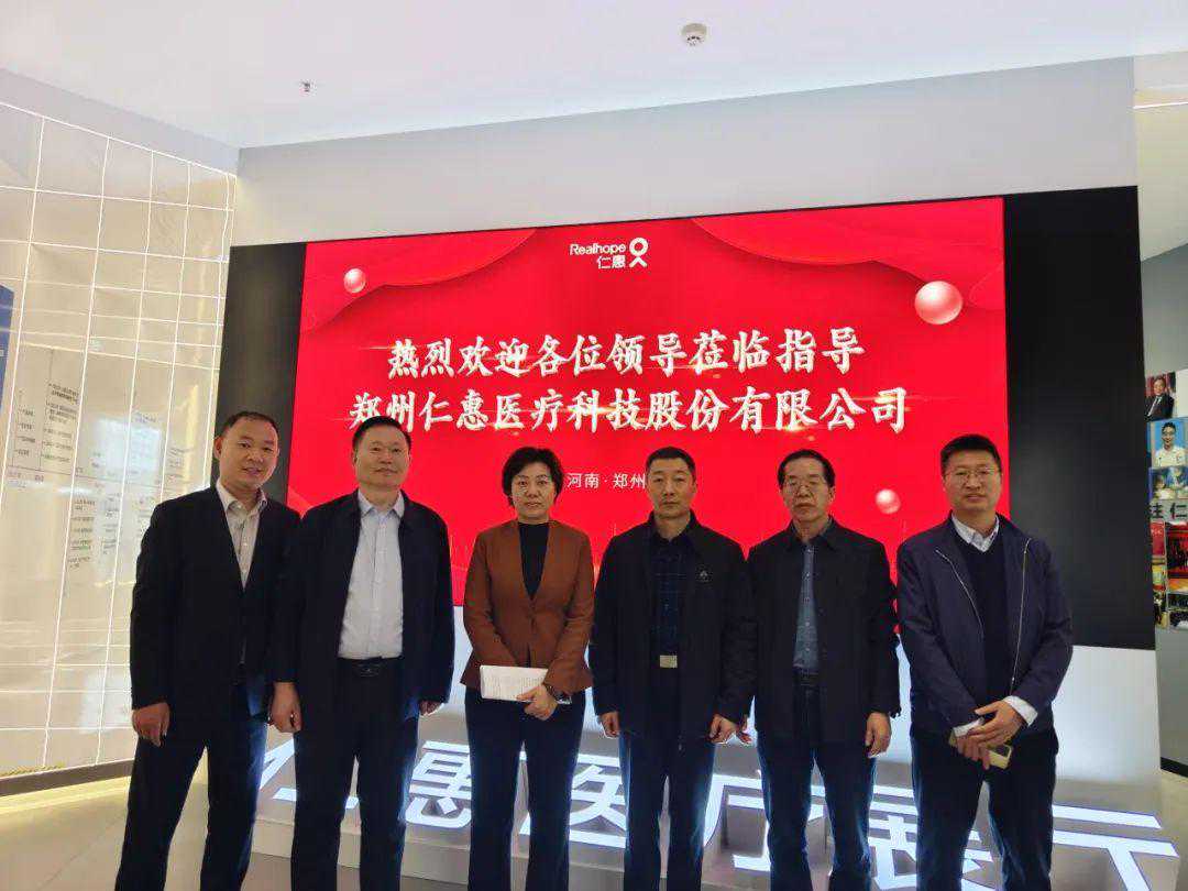 4月2日上午,河南省科学技术厅生物医药处处长宋晖、二级调研员张鹏、四级主任科员杨明、郑州市科技局二级调研员任灿、社会发展科技处处长贺军钊、经开区科技人才局党支部委员刘俊杰等一行人莅临郑州仁惠医疗科技股份有限公司(以下简称“仁惠医疗”)考察调研。仁惠医疗总经理管世昌等相关负责人陪同考察团队参观公司。