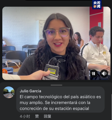 墨西哥网友胡里奥·加西亚对中国科技发展成果表示钦佩,他还留言称,中国空间站建成后,科技有望得到进一步发展。