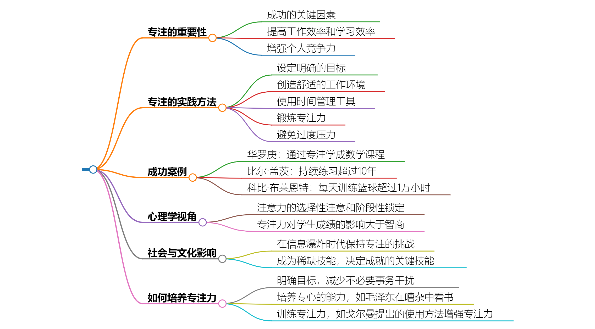 然而,成功还需要其他因素的支持。例如,兴趣与专注和成功不是排斥关系,广泛的兴趣加上做事专注才是成功的关键因素。这表明,除了专注之外,个人的兴趣爱好也是推动成功的重要因素。此外,成功的秘诀还包括设定明确的目标、创建舒适的工作环境、使用时间管理工具、锻炼专注力以及避免过度压力等方法,这些都强调了除了专注之外,还需要有计划和策略来实现目标。