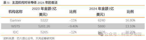 行业内多家主流机构都比较看好2024年的半导体行情。其中,WSTS表示因生成式AI普及、带动相关半导体产品需求急增,且存储需求预估将呈现大幅复苏,因此2024年全球半导体销售额将增长13.1%,金额达到5,883.64亿美元,再次创历史新高;IDC的看法比WSTS乐观,其认为2024年全球半导体销售额将达到6328亿美元,同比增长20.20%;此外,Gartner也认为2024年全球半导体销售额将迎来增长行情,增长幅度将达到16.80%,金额将达到6328亿美元。