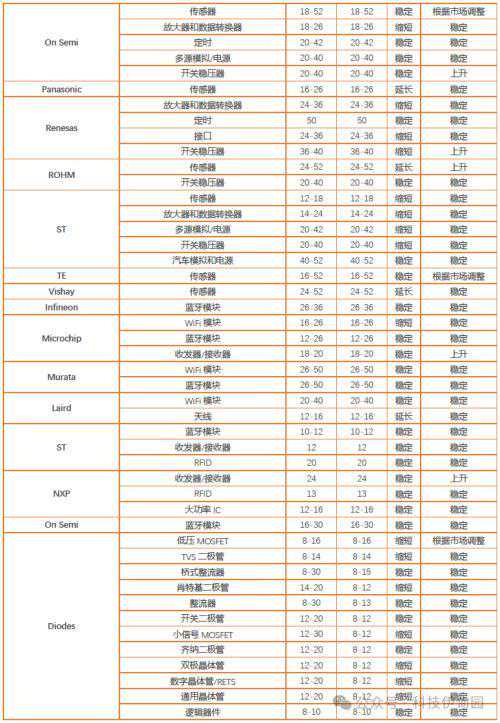 重点芯片供应商交期:从2月各供应商看,模拟芯片、消费MCU成交低迷,价格倒挂严重;MOSFET、IGBT及MCU等车规级产品需求趋缓,交期改善明显;FPGA、射频产品价格有小幅波动,需求回升;存储产品价格回升,需求稳定。