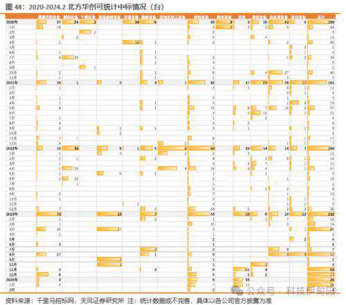 2024年2月,北方华创可统计中标设备2台,同比-85.71%,包括2台刻蚀设备。