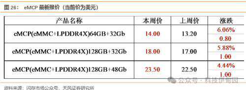 嵌入式市场方面,由于资源供应有限成本上涨,本周嵌入式LPDDR价格全面上涨,高容量eMMC价格小幅上调,部分集成式产品价格跟涨。