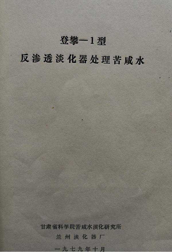 1971年,为解决苦咸水地区的人民饮用水的问题,支援工农业生产和国防建设,中国科学院兰州冰川冻土沙漠研究所承担了国家为解决淡水资源紧缺的攻关项目,开始了苦咸水淡化的研究工作。他们坚持独立自主、自力更生,走我国自己发展科学技术的道路,最终研制出了我国第一台反渗透苦咸水淡化器。特别需要说明的是,这台设备上面没有一个螺丝钉是进口的,所有的材料都是科研人员自己研制的,这在当时的环境下是很难做到的,但是他们做到了。我曾经参加了这个工作的后续部分,见证了这一艰难过程和可歌可泣的精神,现在记录下来给历史留一些记忆吧。