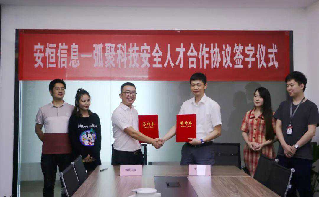 2019年8月17日,弧聚科技与安恒信息签署信息安全管理人才培养与认证合作协议。双方将合力共建“弧聚科技4-Do网络工程师安全技能培训基地”,培养一批具备网络安全意识及知识的人才,助力构建企业数字化转型人才生态圈。弧聚科技副总裁江政,安恒信息网络空间安全学院副院长张海泳等出席签约仪式。