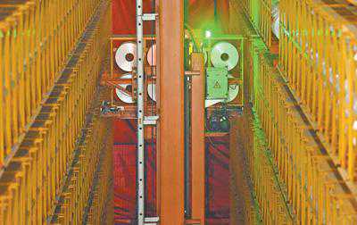 3月14日,机器人将纤维产品存入立体仓库。