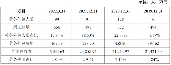 另报告期,公司劳务外包人员雇佣人数分别为70人、128人、91人和99人。