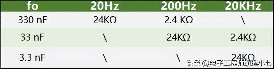 选择不同的电容作为振荡频率f0的粗调,利用同轴电位器实现f0的微调。不同电容和振荡频率f0对应的电阻值如下所示: