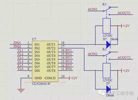 2、ULN2803(用来驱动直流电机,ULN2803可提供8路输出,每路能提供500mA电流)