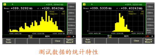 另外,由于以上所述很难判断微电流测量的稳定和可靠性,B2980系列添加了滚动模式(测试随时间波动)和统计分布功能(直方图和标准差σ)。