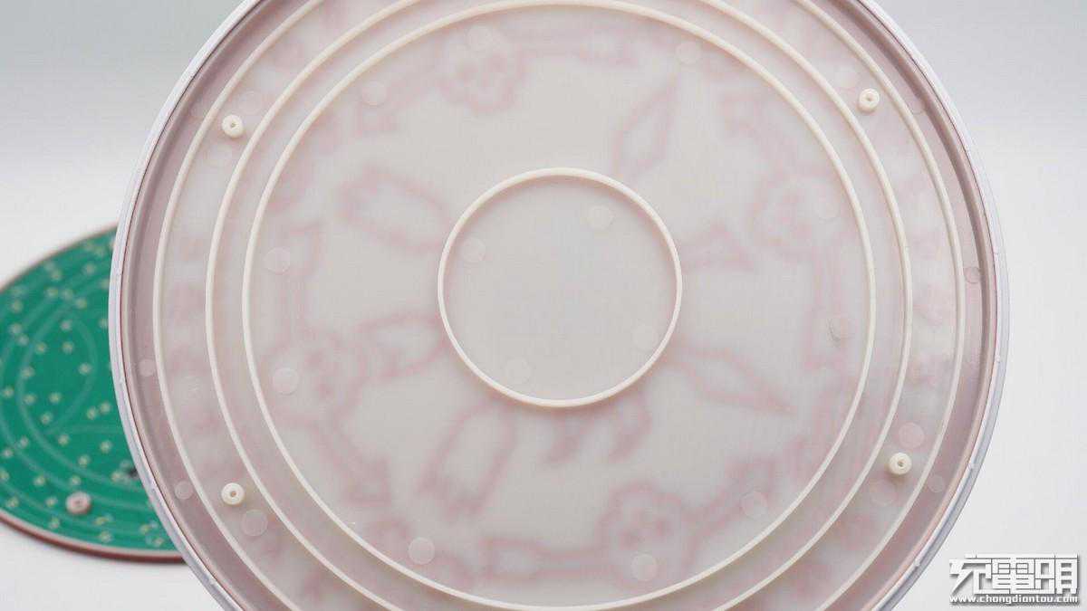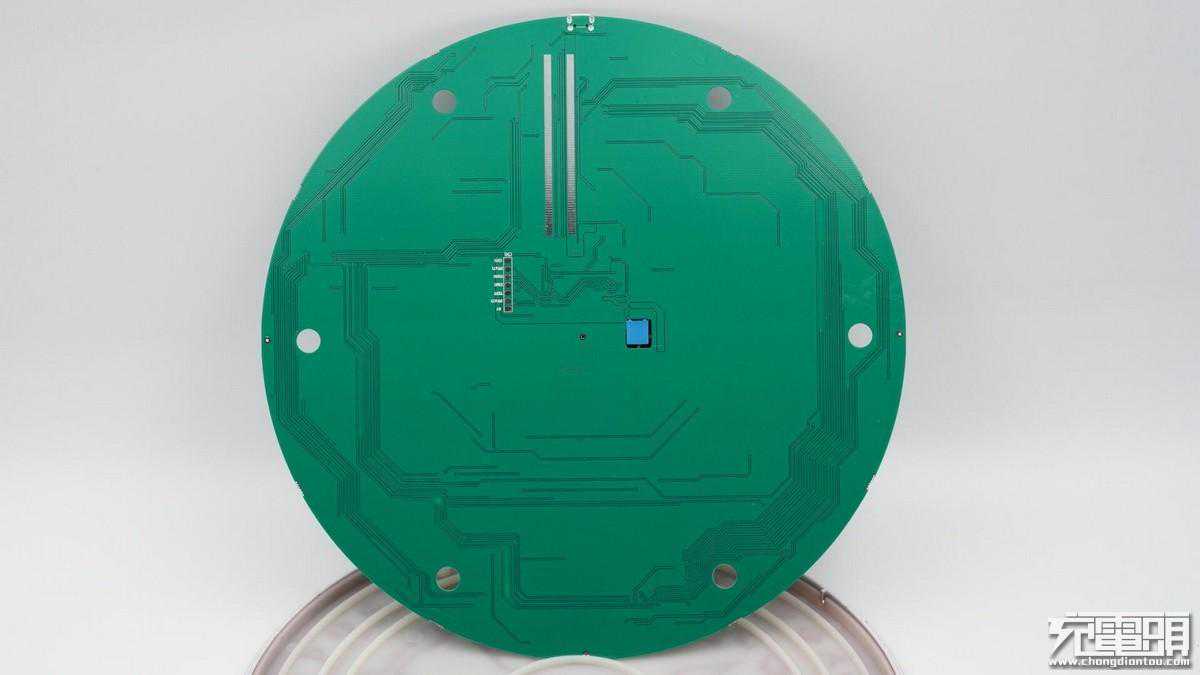 充电头网通过拆解发现,无线充电线圈置于PCB板中心,下方是无线充电路,设计巧妙不会影响到LED灯布局。LED灯布局上契合外壳魔法阵,保证每个文字和图标都能正常亮起。LED灯由深圳富满电子TC5020A进行驱动控制,实现动态灯效。机身壳上设有隔离板,避免层层之间串光。