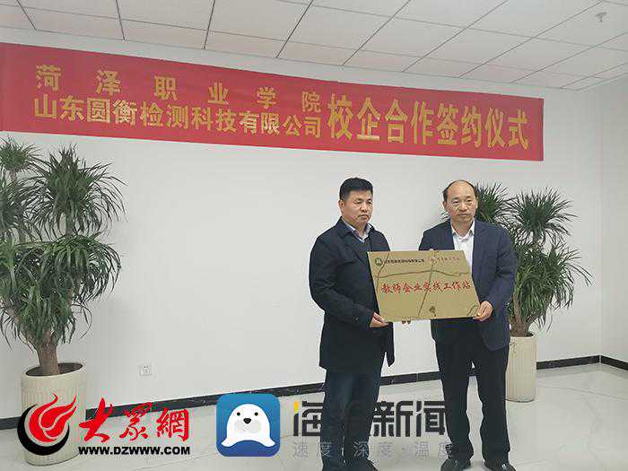仪式上,双方签订了校企合作协议,程凤鸣为山东圆衡检测科技有限公司授予“教师企业工作站”“工学结合实验实践基地实习就业基地”牌匾。与会人员共同参观了山东圆衡检测科技有限公司科研、生产车间。