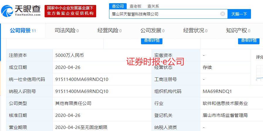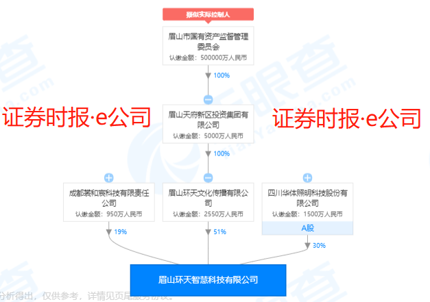 ·e公司记者注意到,环天智慧包括包括三大股东,即环天文化、华体科技(603679)、成都裳和宸科技有限责任公司,三者持股比例分别为51%、30%和19%。其中,环天文化由眉山市国资委100%控股,华体科技则为A股上市公司。
