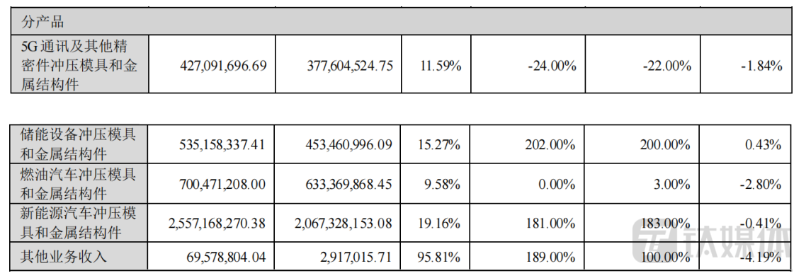 据2022年年报,从祥鑫科技的各细分行业业务毛利率来看,包括计算机通信和其他电子设备制造业毛利率全部下降;从各产品板块来看,除储能设备精密冲压模具和金属结构件外,其他产品毛利率也均出现不同程度地下滑。