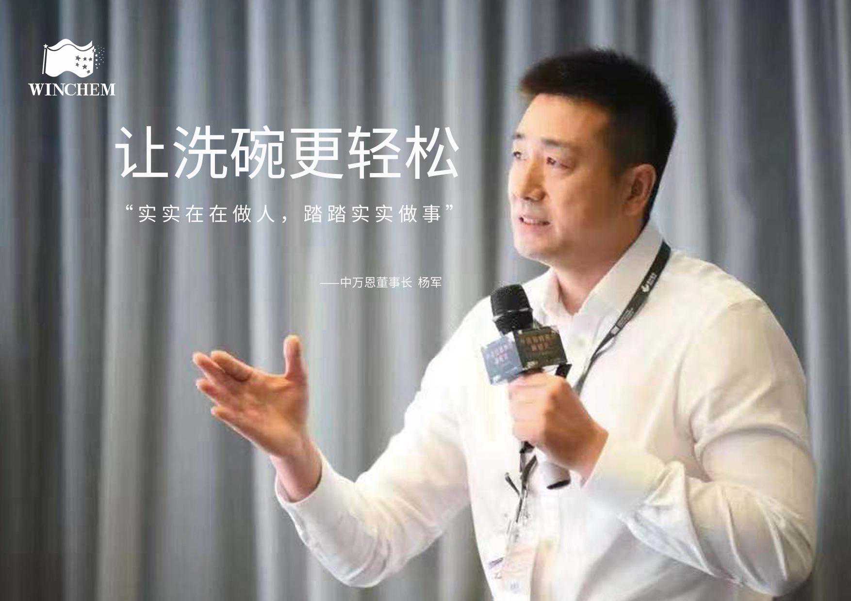 传统的洗涤产品是粉剂的,在调制过程中经常出问题,首先想到用液体替代粉体。但只针对洗涤剂本身的改进是不够的,因为当时的机器无法兼容,于是杨军决定研发配套的专业洗碗机和洗衣机。