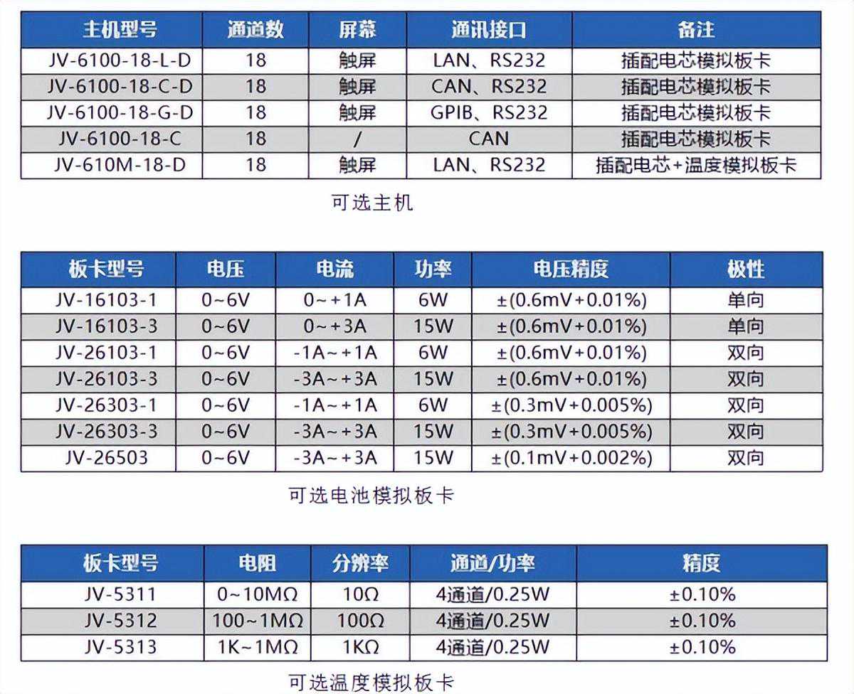 参考:领图电测JV-610M-18复合功能电池模拟器规格表。