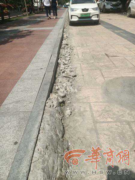 在科技路与高新六路交汇处,路北的人行道内侧,水泥抹成的斜坡好多已经碎成渣。