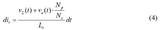该电压使得谐振电流ir(t)下降。然而很小,并不足以在这个时间段内使电流反向。在t3时刻,MOSFETQ2电流依然从源极流向漏极。另外,MOSFETQ2的体二极管不会恢复,因为漏源极之间没有反向电压。下式给出了谐振电感电流Ir的上升斜率: