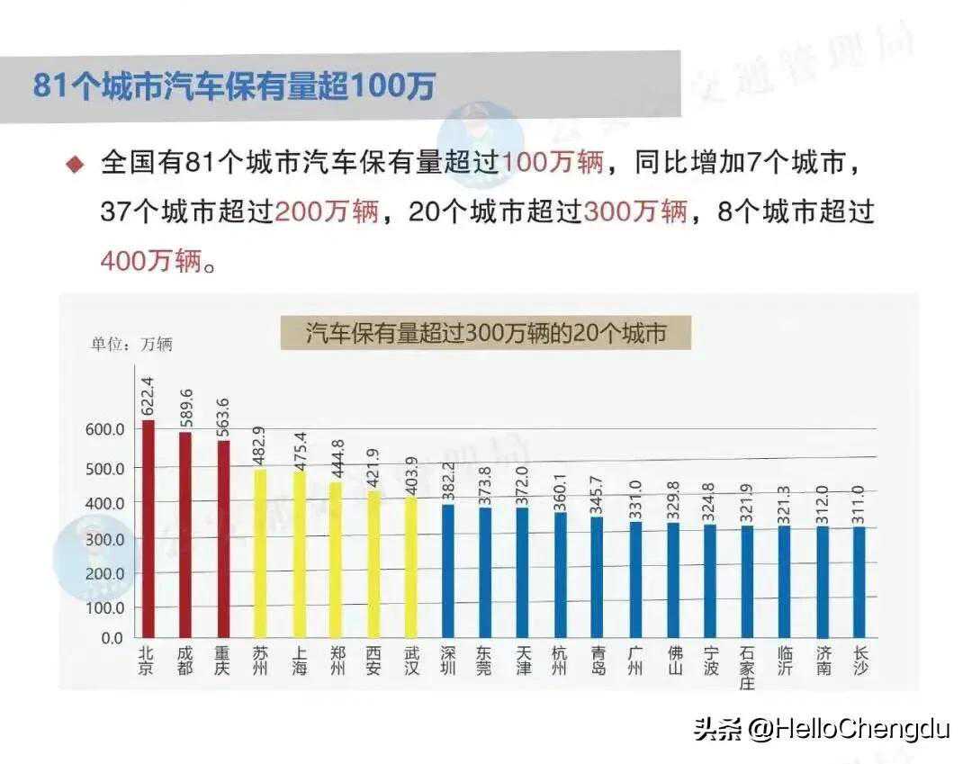 即使在汽车保有量超过300万的城市中,成都的高峰通勤拥堵指数也仅列第十。