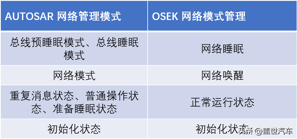 表1AUTOSAR与OSKE的网络模式映射