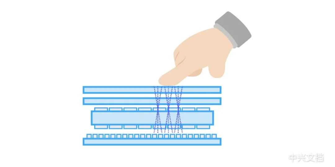 指纹的“嵴”(jí)凸起,距离极板近,电容大;指纹的“峪”(yù)凹下,距离极板远,电容小。