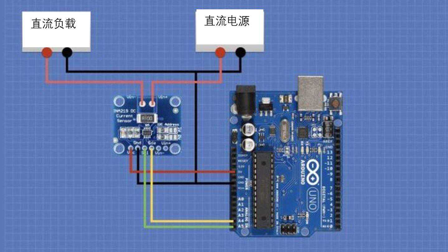 INA219的工作电压为5伏特,可以由Arduino提供。