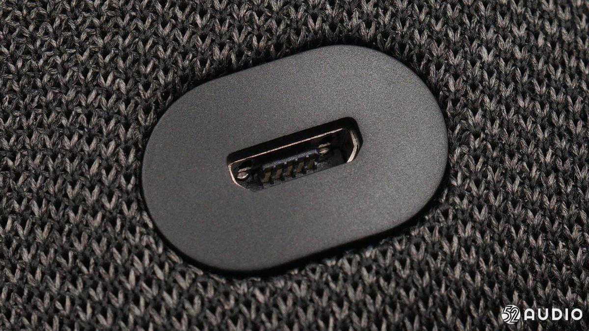 音箱底部有一圈橡胶防滑垫,上面印有部分产品信息。