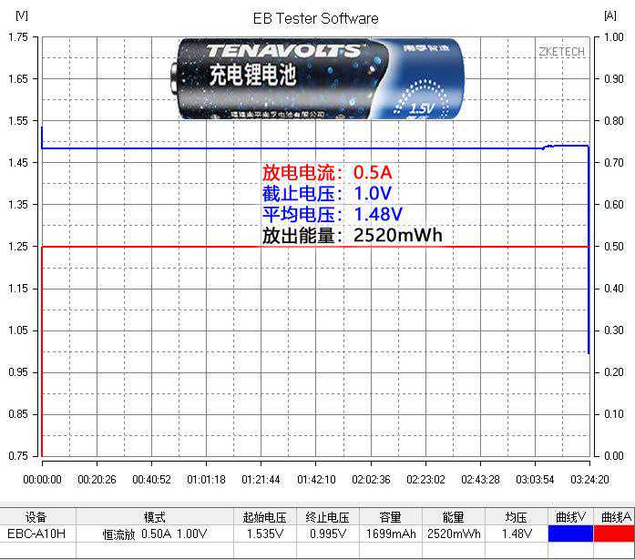 其实以0.1A甚至更小的电流放电的话,碱性电池也能放出来2500mAh左右容量,我之所以没做小电流测试,是因为太费时间了,大家从图表中可以看到,0.2A放电都要花将近十个小时才能测完,0.1A实在没法测……