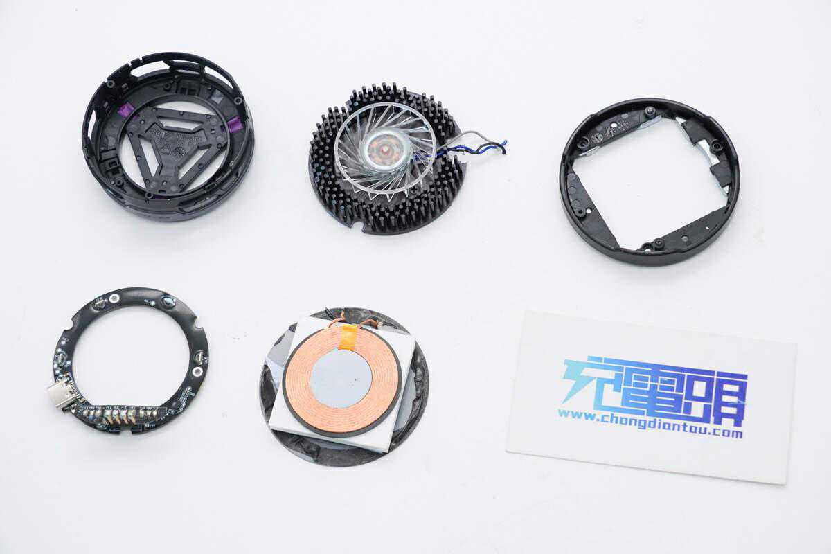 充电头网通过拆解发现,这款产品内部由两部分组成,手表部分采用独立的无线充电模组,支持苹果版本和三星版本。