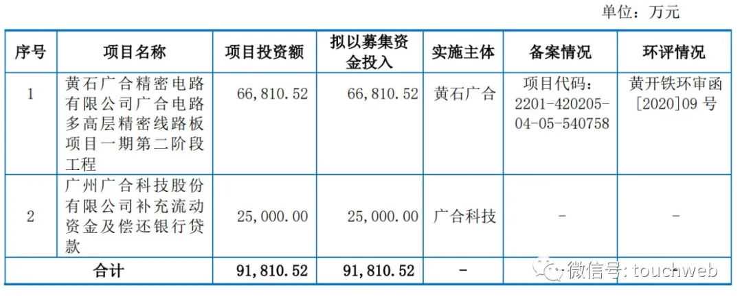 广合科技计划募资9.18亿元,其中,6.68亿元用于黄石广合精密电路有限公司广合电路多高层精密线路板项目一期第二阶段工程,2.5亿元用于广州广合科技股份有限公司补充流动资金及偿还银行贷款