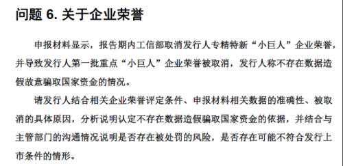 公司在招股书中表示申请称号的相关文件真实准确,不存在数据造假故意骗取国家资金的情况,是因群众举报,工信部出于审慎角度取消公司专精特新“小巨人”企业荣誉。