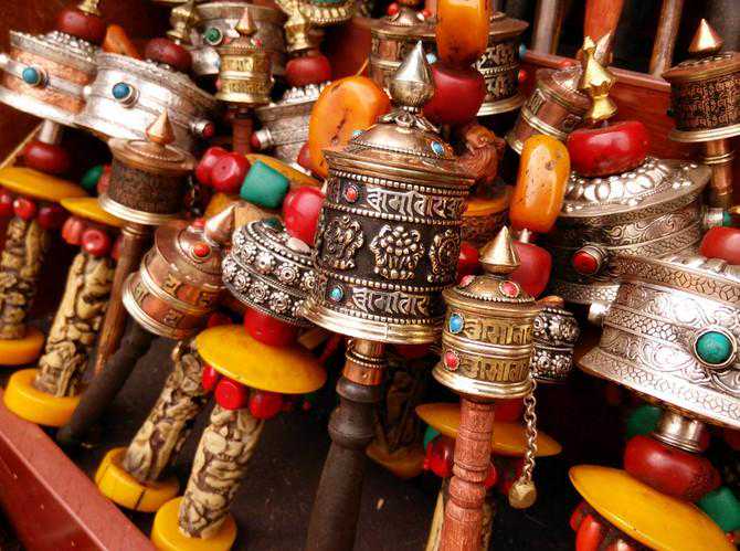 转经筒非常常见,又叫“嘛呢”经筒,嘛呢轮。分为手摇式和固定式两种。手摇式转经筒也叫手摇嘛呢轮,用金、银、铜皮制成,压制着各种花纹图案,并刻有六字真言。内装有经卷。并装有可转动的轴。转一转嘛呢轮,就等于诵经一遍。