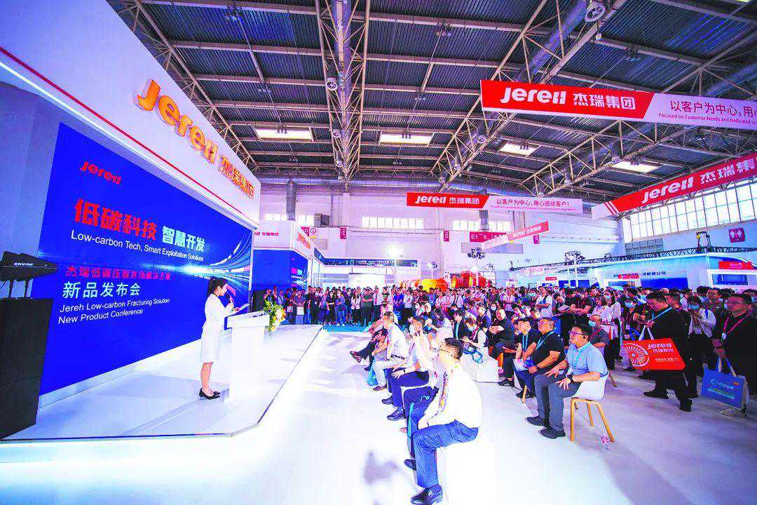 在展会现场,由杰瑞集团自主研发制造的全球首台连续工况8000型电驱压裂橇、全球首台电驱智能连续油管设备正式发布,以科技创新持续引领行业变革和发展。
