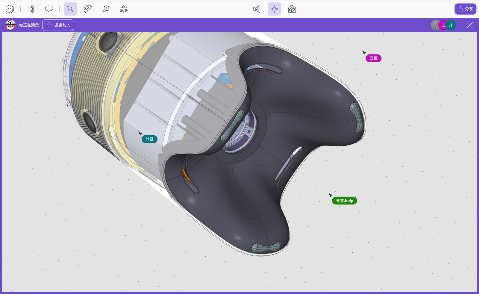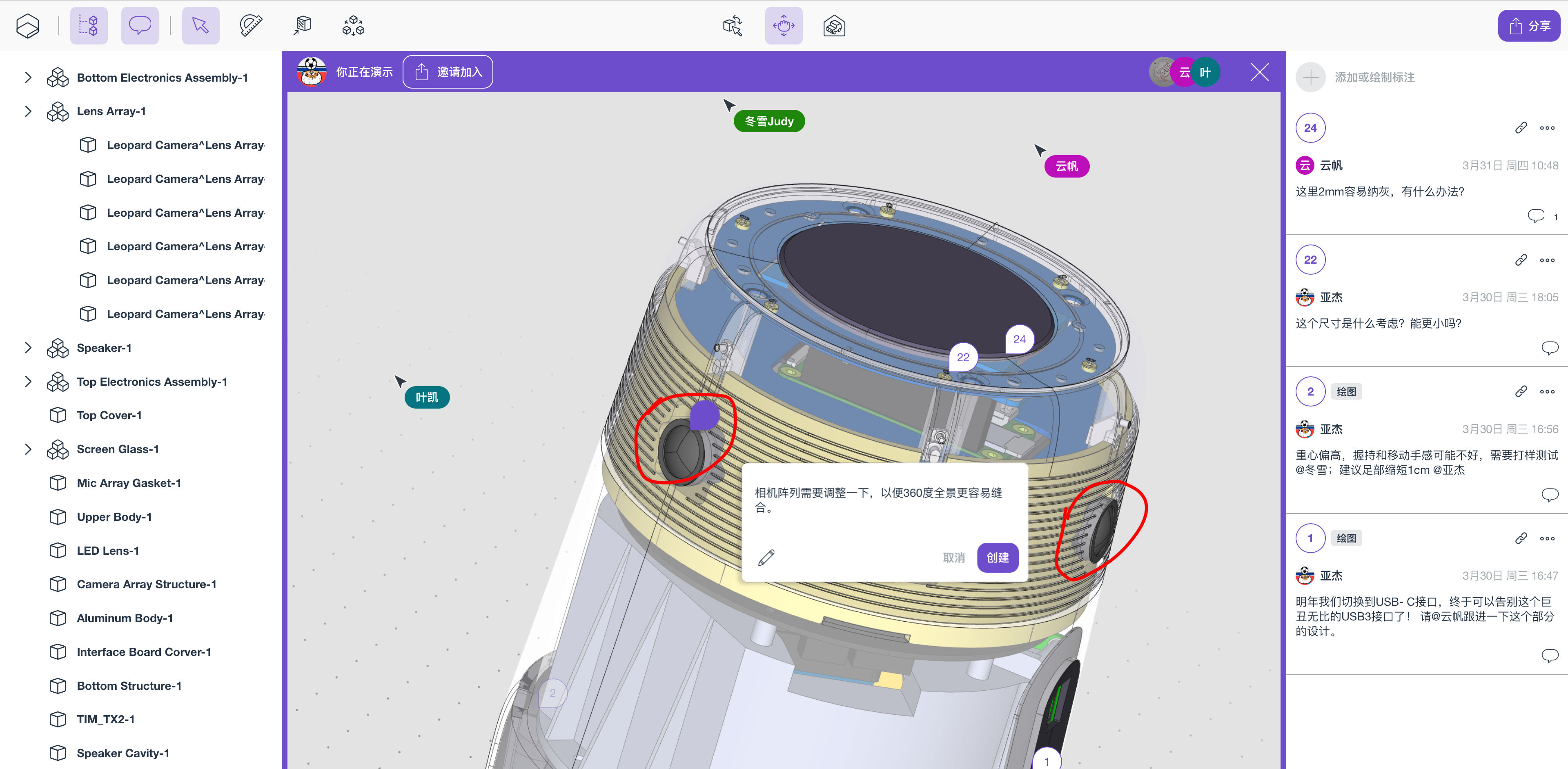 借助Bench3D随时共享讨论的功能,可将原本【1周/次】的沟通周期大幅缩短,【每天】甚至即时共享讨论成为可能,在线讨论3D文档,就像在线文档协作一样轻松。同时团队可节省大量原本用于描述产品模型上下文、或截屏制作PPT的时间;Bench3D同步演示的功能,改变线上会议的陈旧体验,让线上会就像面对面线下评审一样直观。