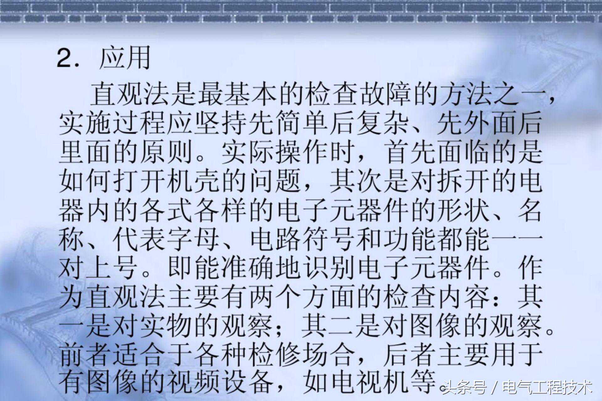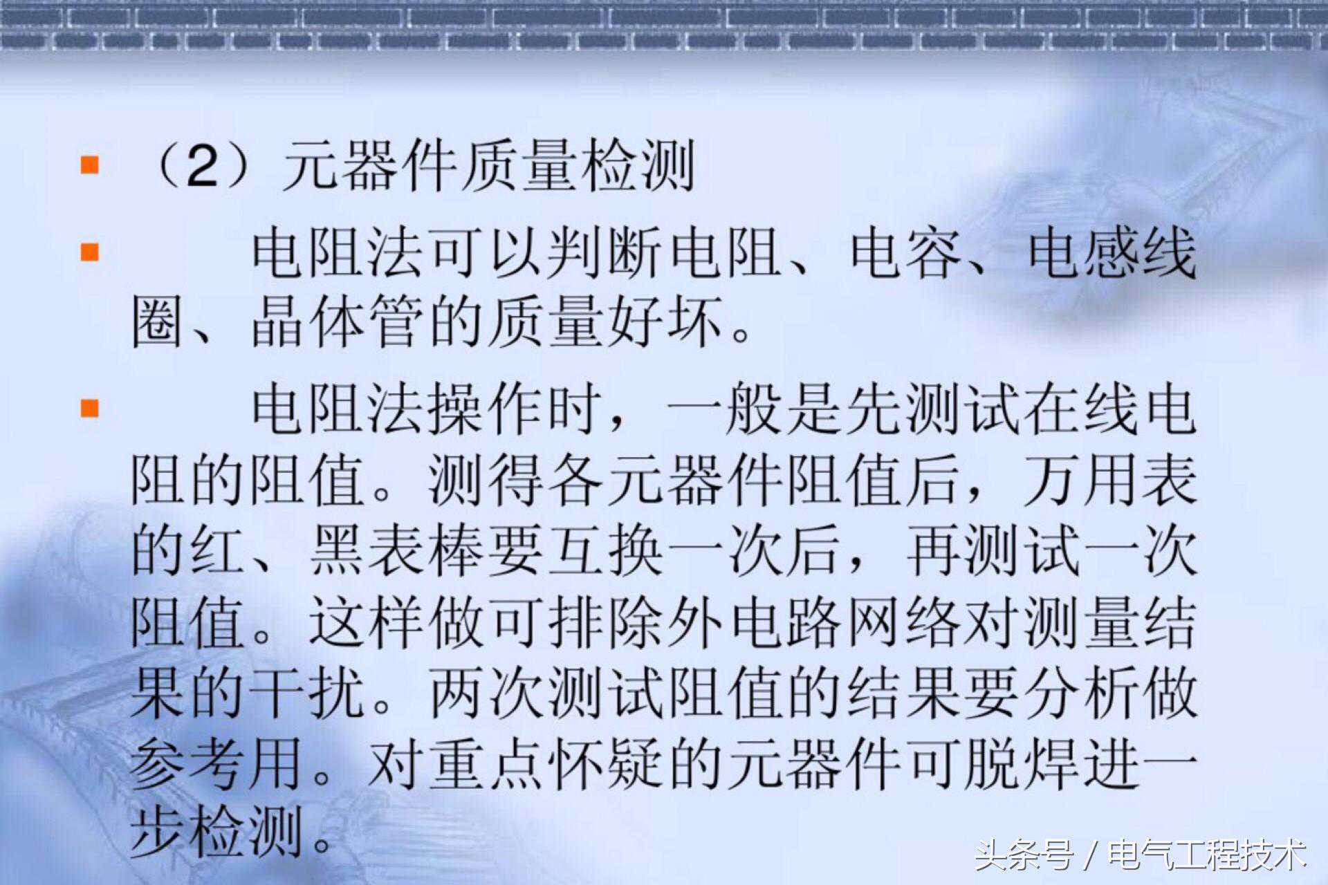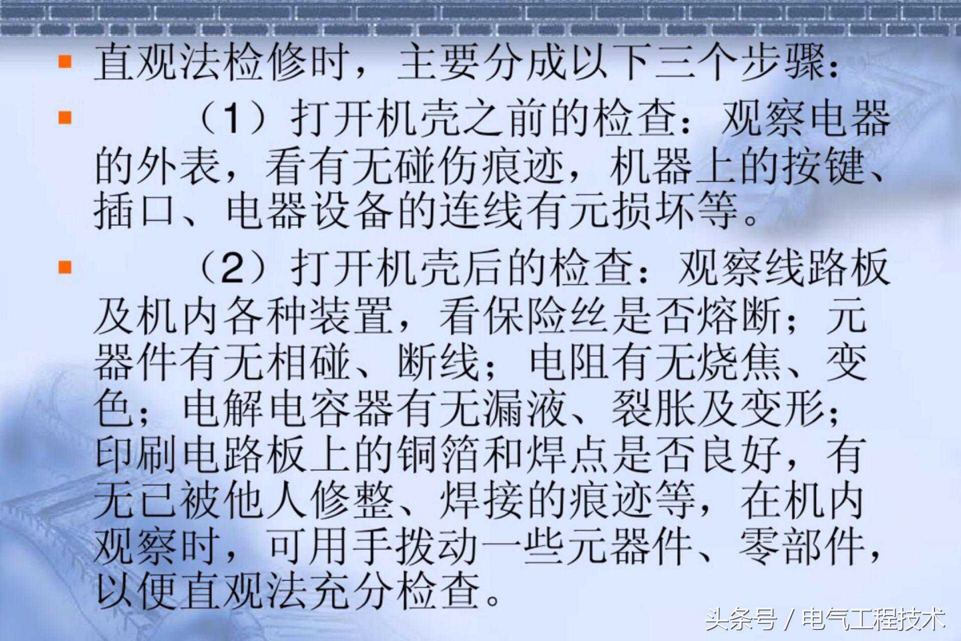 谈起电子电路,相信很多的电子电工师傅都很熟悉,对于电子电路老师傅而言,排查电子电路故障并非难事,一般情况下很快就可以找出故障点,但是对于大多数的初学者而言,都普遍有无从下手的经历,当然,电子电路维修除了要有比较丰富的实践经验外,还应具备很扎实的理论知识和一定的逻辑推理能力,除此之外,掌握适合自己的电子电路故障排查方法也是非常有必要的,有了一定的故障排查方法,可以让我们的故障排查更加的清晰化和系统化,自然的,排查故障的效率也会跟着提高,常见的维修方法有看,摸,听,测量等等,今天我们就来看一看电子电工老师傅总结的19个故障排查方法,适合自己的就是最好的: