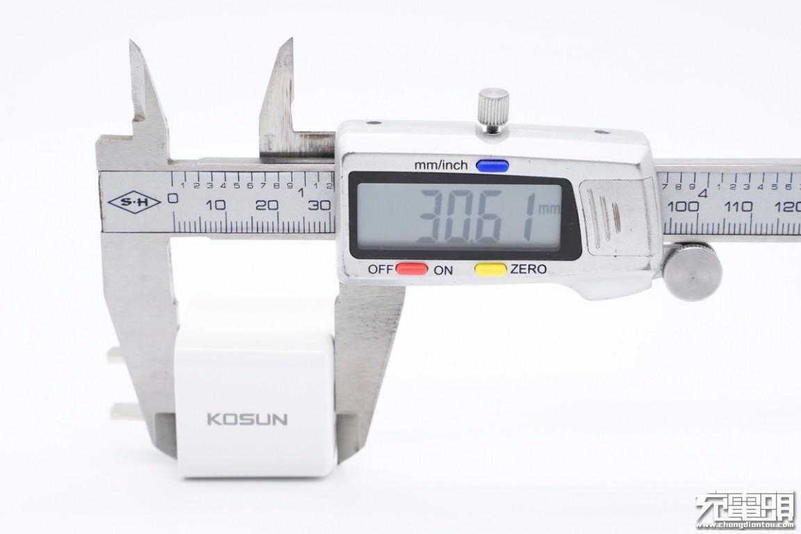 使用游标卡尺实测充电器机身宽度为30.16mm。